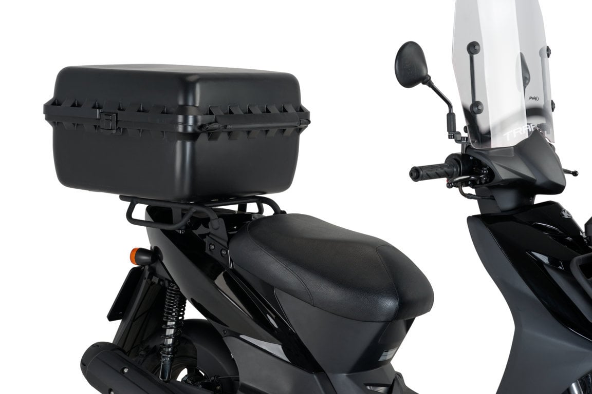 Baúl de la marca Puig, diseñado para permitir el transporte de paquetes y comida rápida para mensajeros en moto.