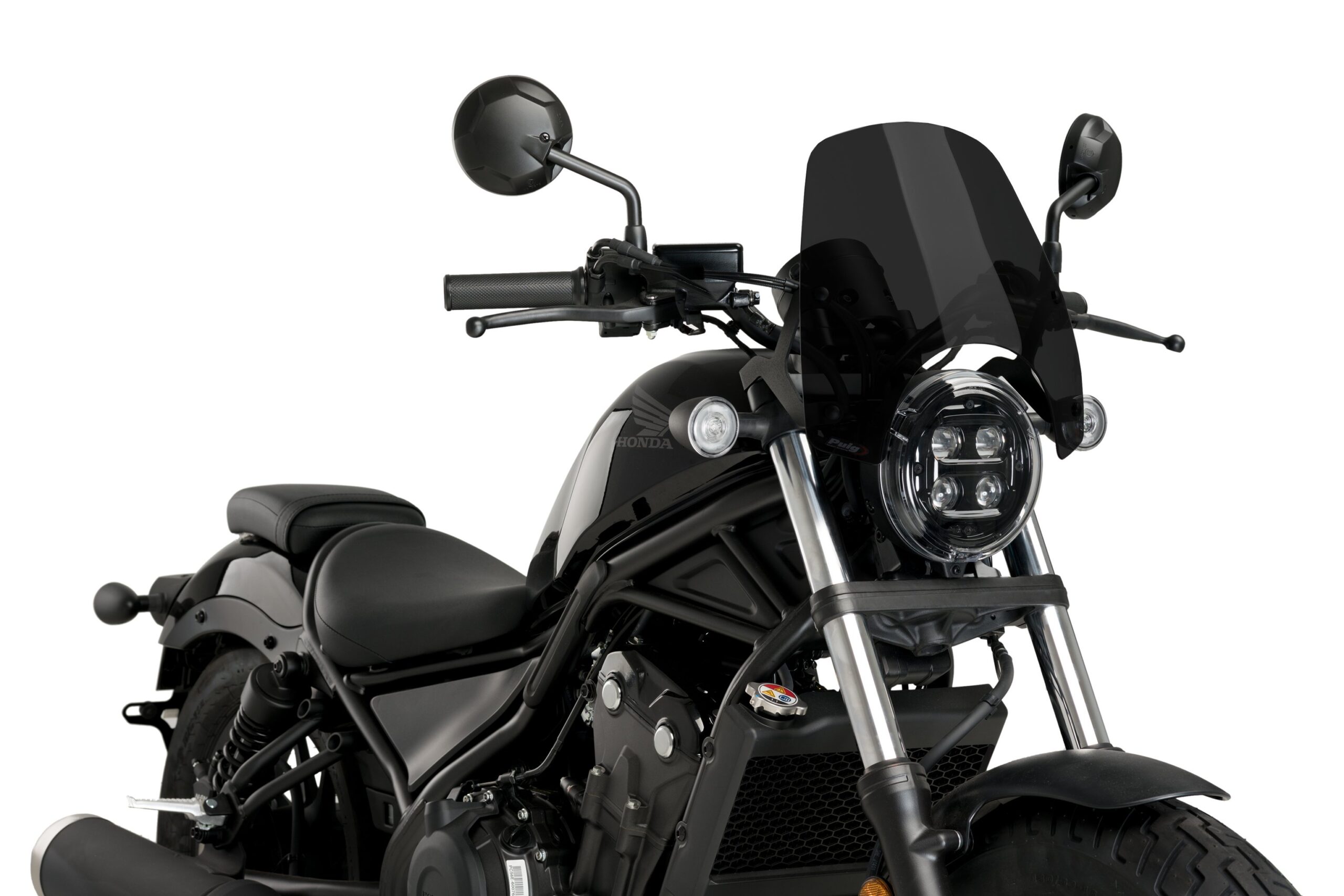 Carenabris New Generation Sport para la Honda CMX 500 Rebel de la marca Motoplastic Puig es una cúpula corta fabricada en material acrílico de 3 mm de grosor y con canto redondeado de 2 mm para no perjudicar al usuario.