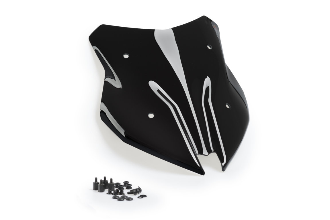 La pantalla ha sido diseñada en el departamento de diseño de la marca HIGH-TECH PARTS usando el túnel del viento virtual, en este caso el enfoque del diseño ha sido el de reducir la altura para disponer de una gran campo de visión y mejorar la conducción en los desplazamientos urbanos o en conducción sport en carreteras reviradas buscando más las sensaciones y la estética de una moto algo más naked.