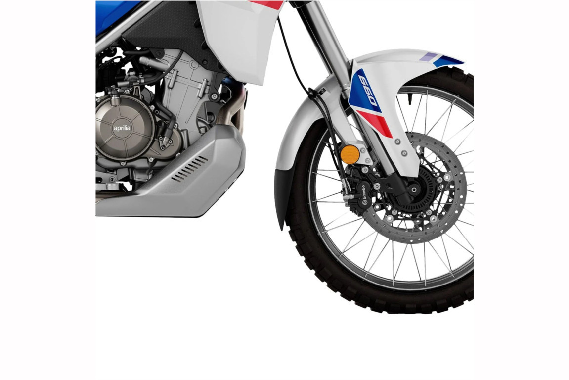 Faldón de guardabarros delantero Puig para la fantástica Aprilia tuareg 660 para mejorar la protección ante posibles impactos de agua, barro, gravilla etc en la zona de la rueda delantera y colectores y de esta forma aumentar sus aptitudes camperas.