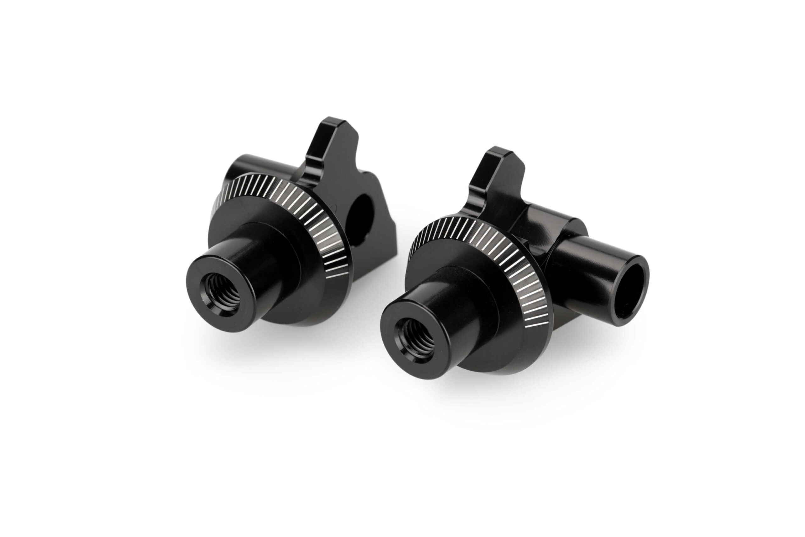 Accesorio diseñado por el equipo de diseño que la marca tiene en Barcelona y fabricado en aluminio mecanizado en color negro para mejorar la ergonomía en la zona de las estriberas para una mejor conducción tipo trail de la moto italiana.