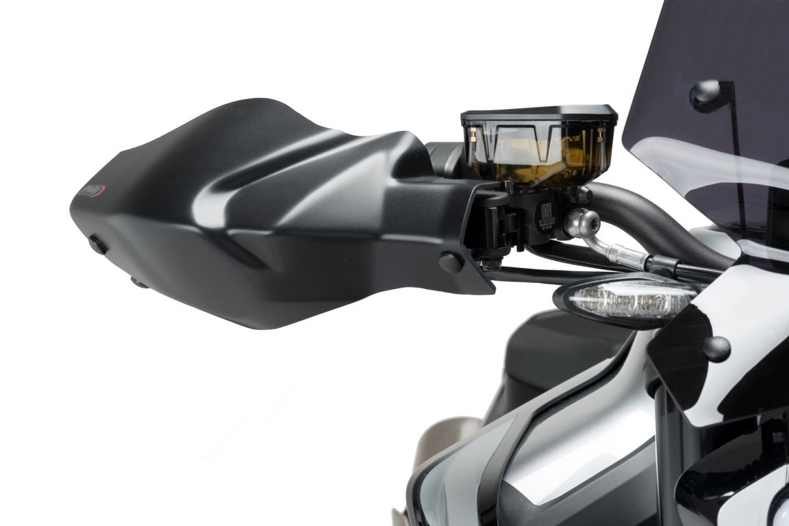 Paramanos Puig para la KTM 790 Duke diseñado por el departamento de diseño que la marca tiene en Barcelona tomando las medidas originales de la moto, con el objetivo de dotar a la moto y motero de una mayor protección en la zona de embrague y freno de la moto.