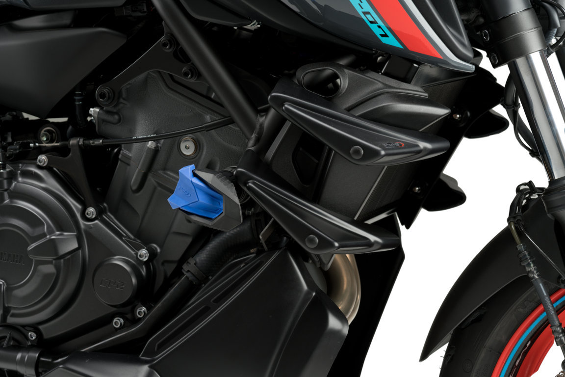 - Beneficios que aporta este accesorio: Protege la zona del chasis y motor de la moto sin sobresalir a la zona del manillar y en caso de caída toca el protector antes que las estriberas de la Yamaha MT 07