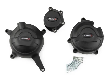 Para los riders que les gusta hacer rodadas en circuito Motoplastic Puig ha diseñado este kit de 3 tapas protectoras de motor para proteger el motor de la  moto de posibles impactos por caída. El protector tiene un grosor de 4 mm y está fabricado en Polipropileno y incorpora unos avisadores para que en caso de caída los comisarios puedan determinar la gravedad del daño causado en la moto ya que las piezas protectoras están incluidas en las listas de piezas para competición FIM 2025.